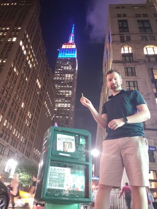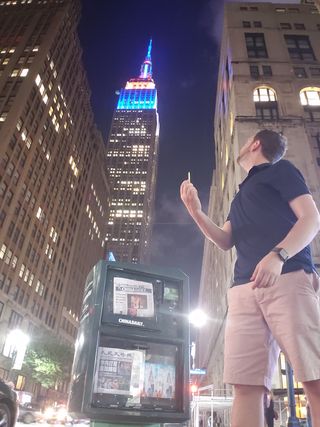 It's fun to be able to get both hands in a shot and strike a full-body pose. But we found it hard to rest the phone and snap a selfie when in front of iconic New York City landmarks. Then we thought back to Samsung's examples. They used a tripod for a group shot, and mimed laying on the couch with a dramatic two-handed pose, without actually taking a photo – something that would be difficult without a tripod, too.